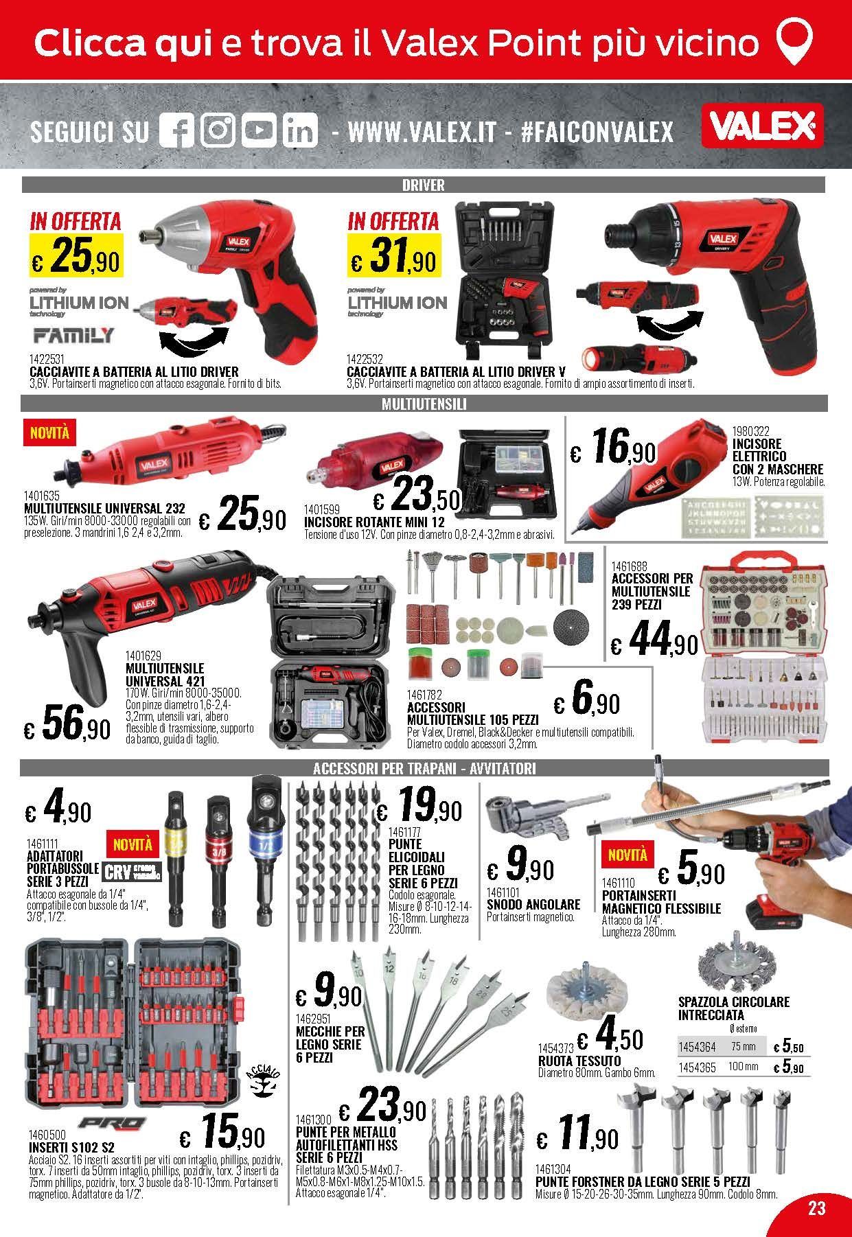 In questa sezione avete l’opportunità di tenervi informati sugli sconti, le offerte e le promozioni che periodicamente vengono avviate su macchine, elettroutensili, accessori, materiali ed ogni altra tipologia di articolo presente all'interno dell’ampio catalogo, per i quali potete sempre chiedere accurati preventivi. Tra i nostri marchi troverete: Bosch, Valex, Maxmayer, Usag e tanti altri ancora.