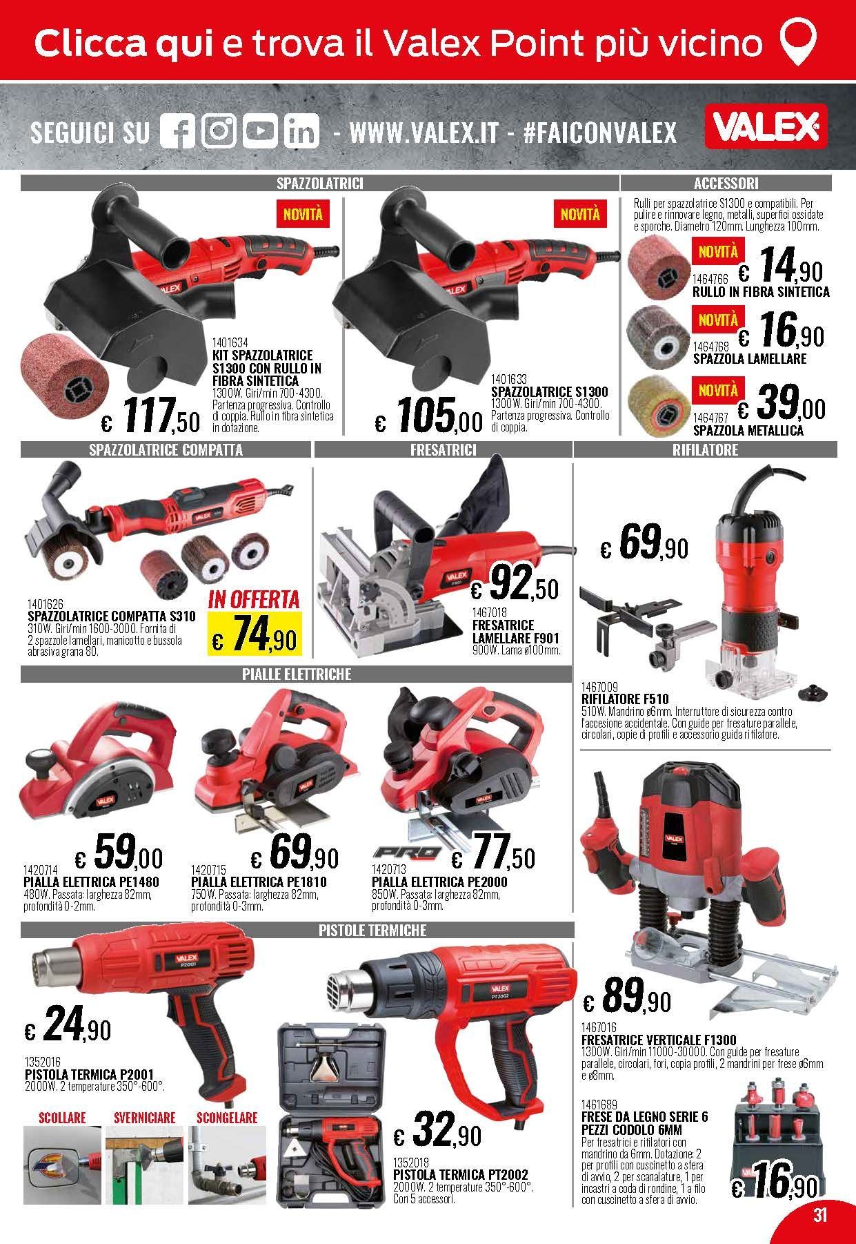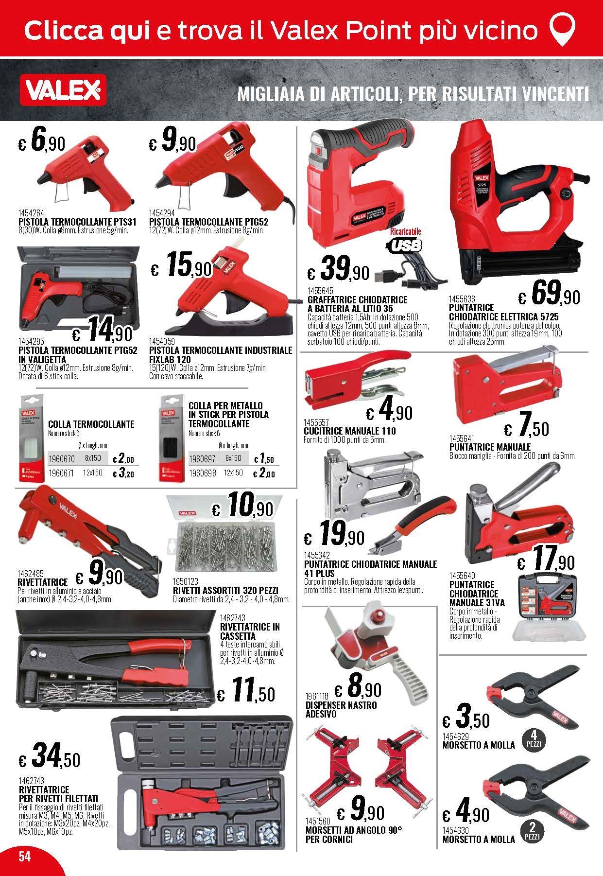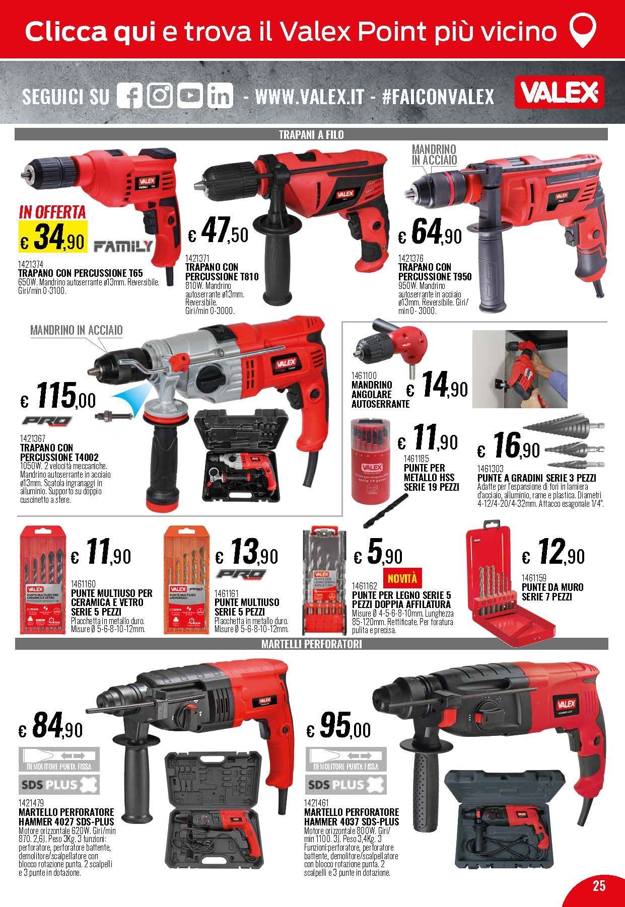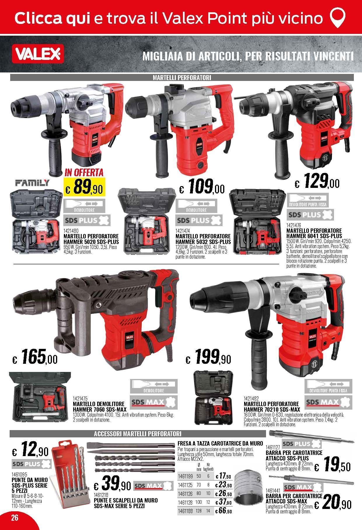 Propone vari tipi di elettroutensili come trapani, perforatori, cacciaviti elettrici, avvitatori a lastra di gesso, martelli demolitori, smerigliatrici, scanalatrici e tanti altri strumenti per le vostre ristrutturazioni.